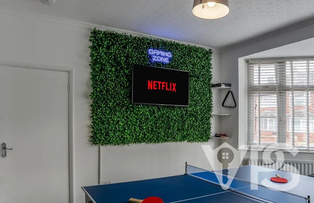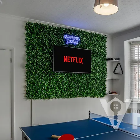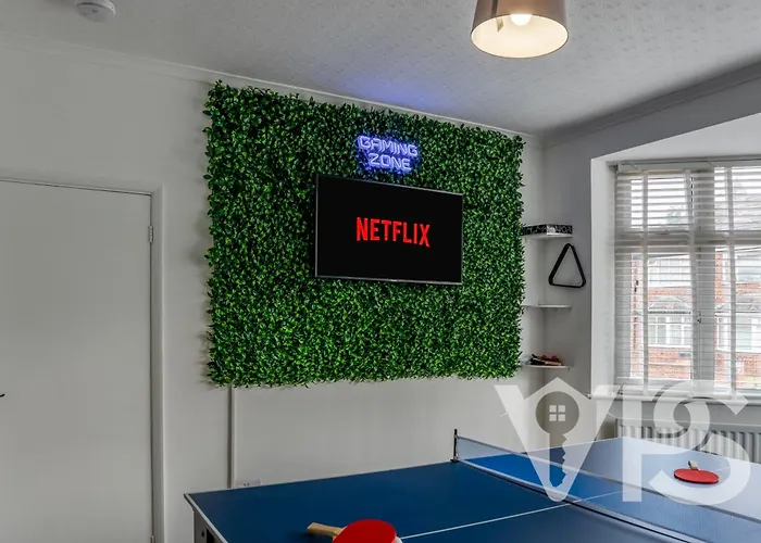 Approximately a 5-minute drive from the riverside Aylestone Meadows Local Nature Reserve, Family Fun Retreat, Gaming Room, Garden & Sleeps 8 Leicester villa provides access to a terrace with outdoor dining areas. Offering a swimming pool, the Leicester holiday home invites guests to visit Victoria Public Park, located 2.5 km away.